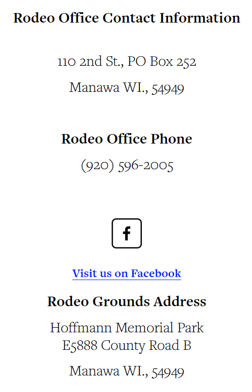 Mid-Western Rodeo July 3, 2023July 30, 2024 Rodeo Schedule Rodeo Parade Rodeo Tickets Manawa Rodeo Website Check out the rodeo website for more info or to purchase tickets Related